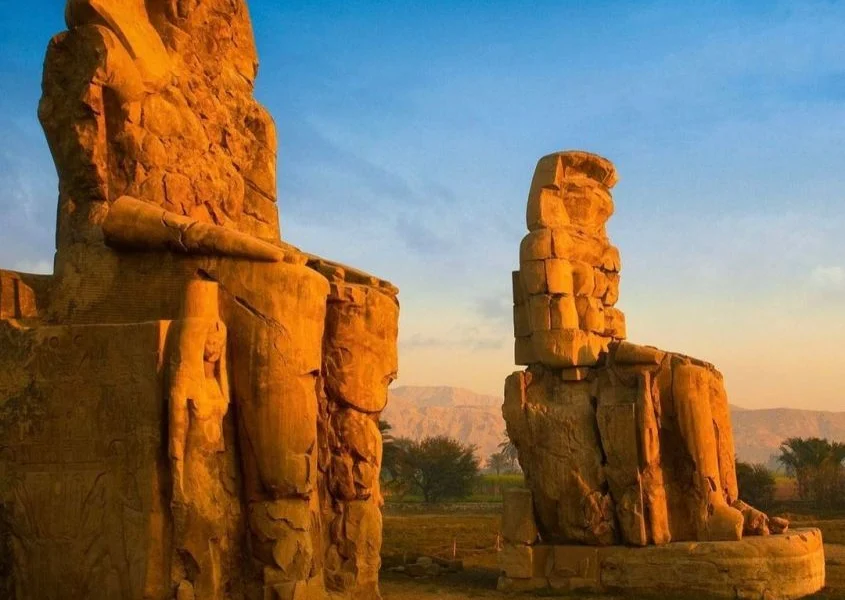 The Colossi of Memnon are two enormous stone statues located on the west bank of the Nile River,…